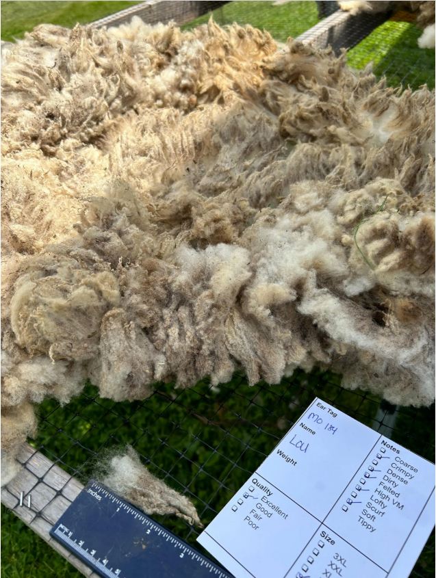 This wool was sheared off of Lou in June 2024.